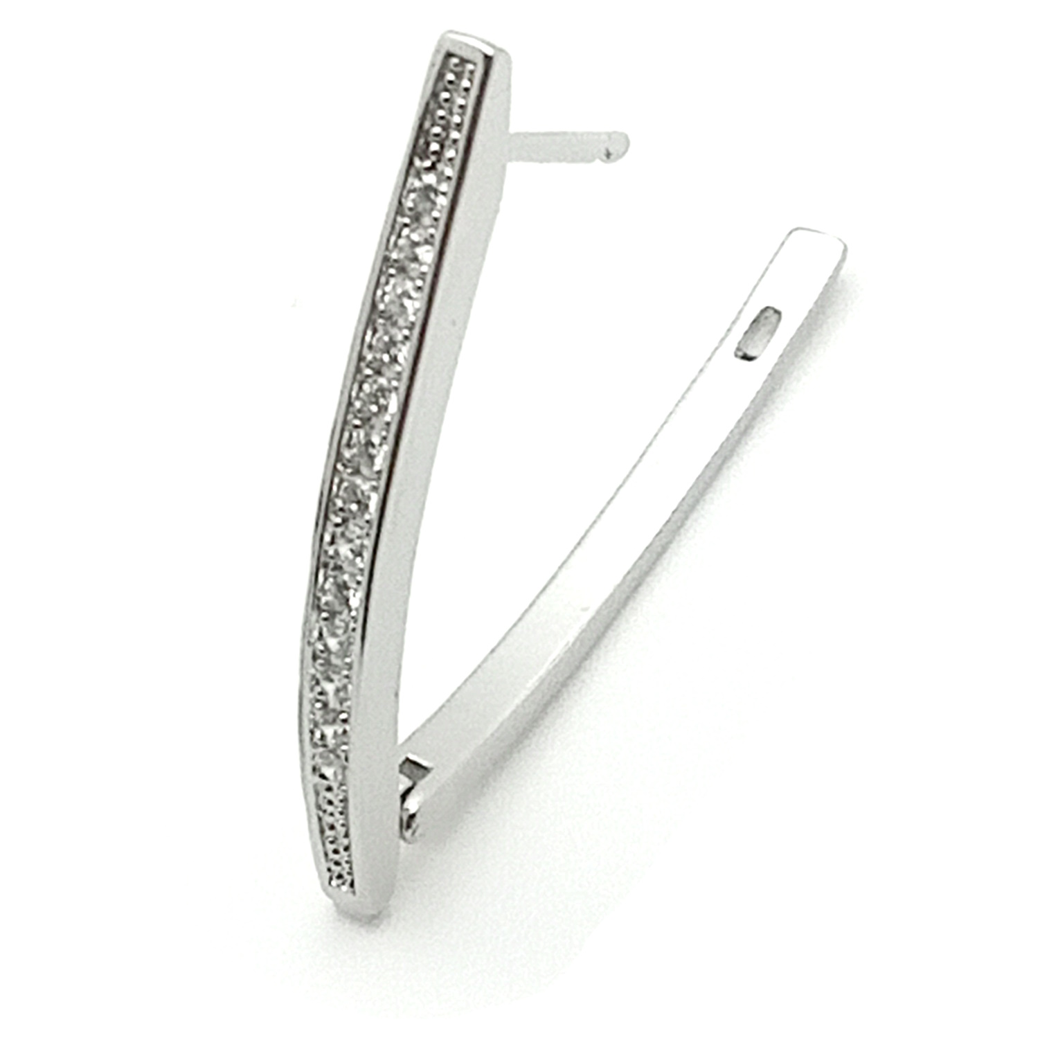 Prepare to captivate and shine with our exquisitely crafted Polished Silver Plated Huggie Earrings. These aren't just earrings; they are your secret weapon for an instant boost of confidence and undeniable style. Each earring is meticulously adorned with an uninterrupted stream of brilliant diamante crystals, set to catch every glimmer of light and scatter it with breathtaking precision. The sleek, elongated huggie design artfully embraces your earlobe, offering unparalleled comfort and a secure fit that you'll barely notice, yet everyone else will admire.