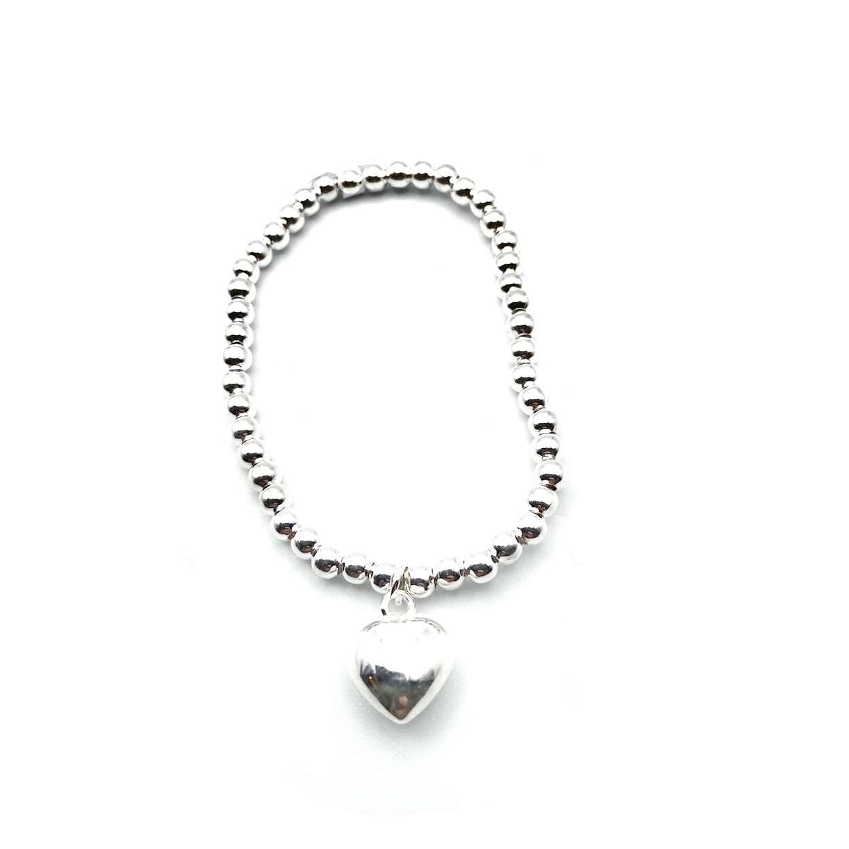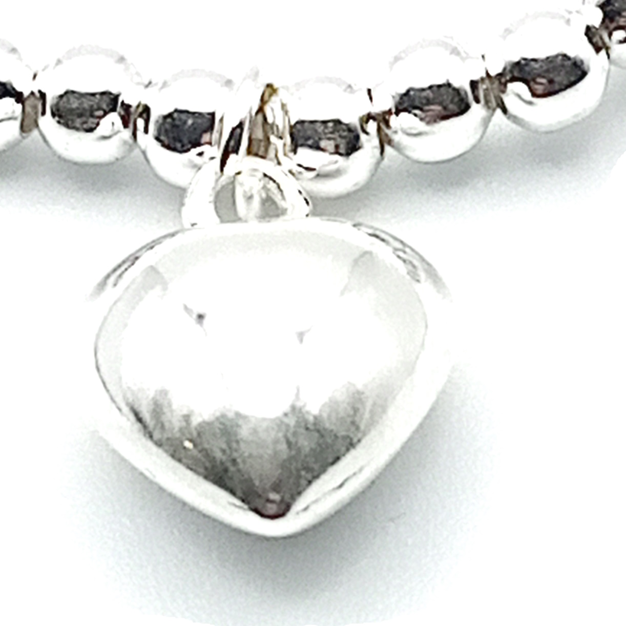 Adorning this radiant piece is a charming, solid puffed heart. This delicately sculpted charm isn't just an embellishment; it's a timeless symbol of affection and warmth, adding a touch of romantic whimsy to the contemporary design. Whether you're dressing up for a special occasion or simply adding a touch of sophistication to your everyday look, this bracelet is a versatile staple that exudes charm and grace.