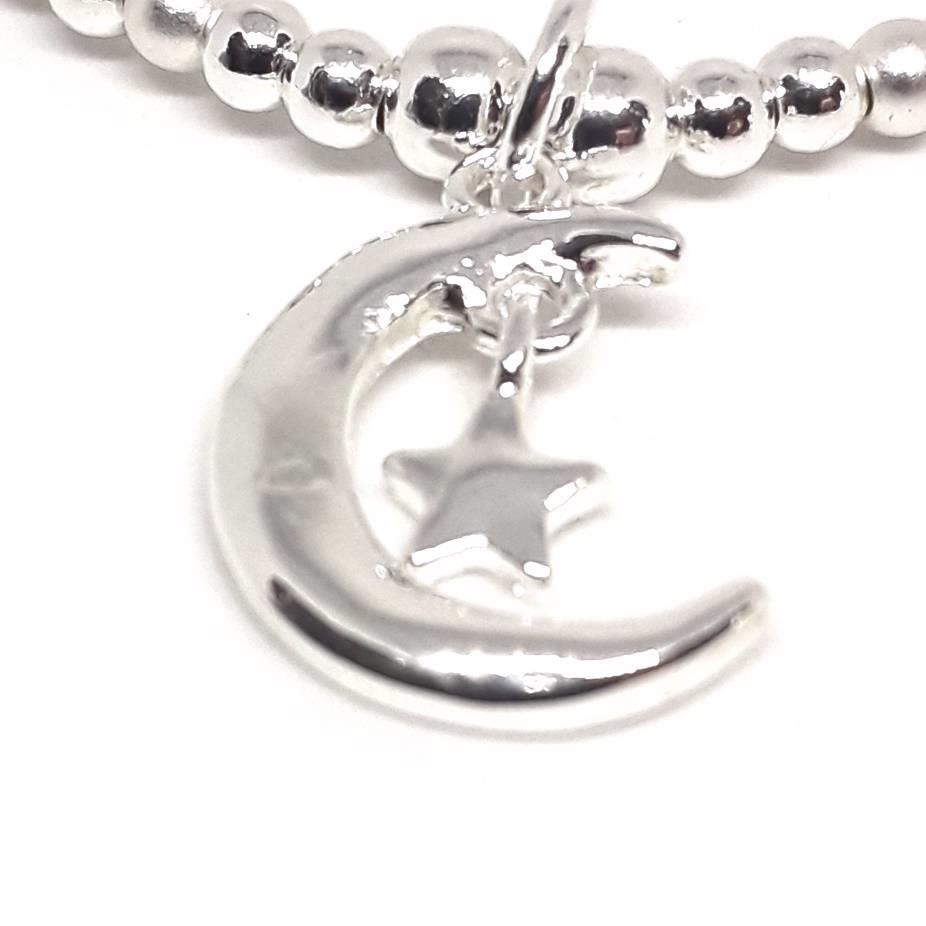Moon and Star Charm Bead Bracelet (Silver)
