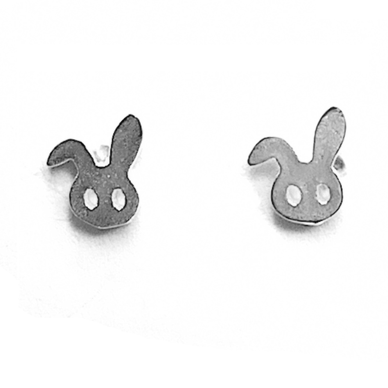 Embrace Whimsy: Delicate Sterling Silver Bunny Outline Stud Earrings