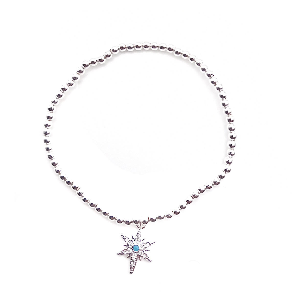 The true centerpiece is the stunning wintery star charm. Its textured surface catches the light from every angle, while a captivating blue gemstone at its heart evokes the deep, enchanting hue of a winter night sky. This bracelet isn't just an accessory; it's a personal piece of the cosmos, ready to add a touch of magic to your everyday style.