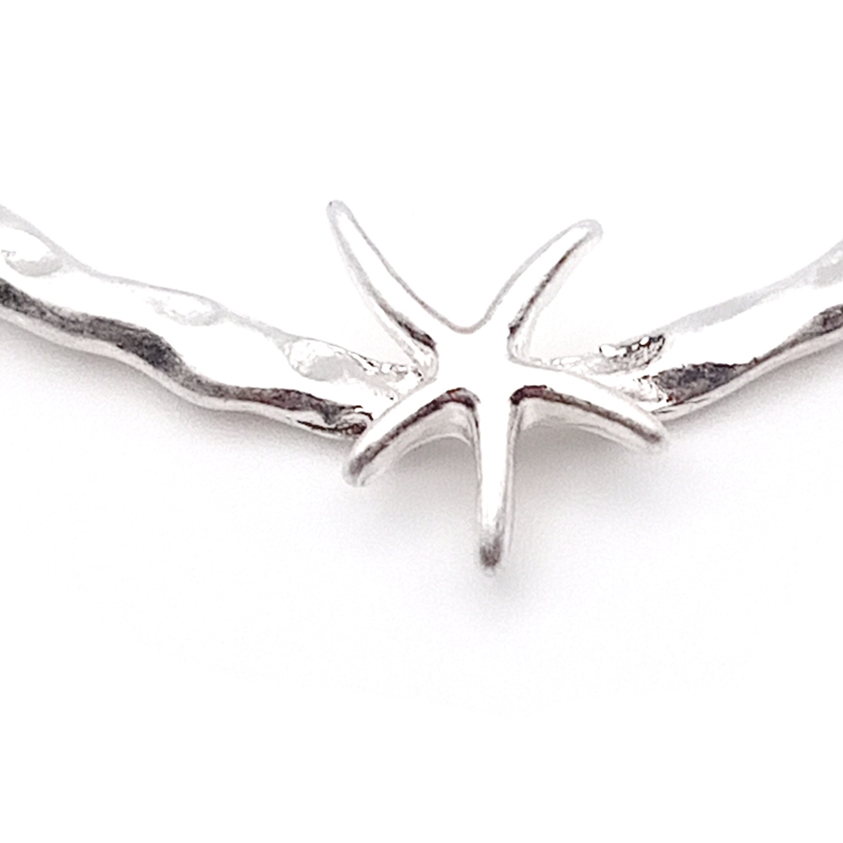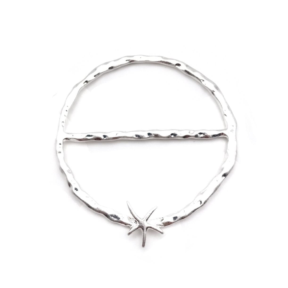 Transform your everyday scarves into stunning focal points with this exquisite vintage-style, silver-plated scarf ring. Its unique hammered texture catches the light beautifully, creating a subtle, shimmering effect that adds depth and sophistication. The centerpiece, a gracefully sculpted starfish, rests delicately on the ring, a charming nod to the ocean's wondrous treasures that will draw admiring glances.